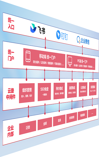 对协作平台提供支持服务,,,支持企业应用与协作平台对接,,,,包含组织同步、、、消息集成、、待办集成等。。支持目前主流的协作平台:钉钉、、、企微和飞书。。。
